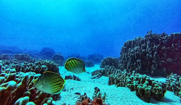 Bajo esta superficie de cristal, la vida submarina se desarrolla en un espacio lleno de colores y formas. Es dominio del Nanue (Kyphosus sandwicensis), un pez herbívoro que actúa como el jardinero del arrecife al podar las algas que compiten con el coral por el espacio. Junto a él, las tortugas marinas (Chelonia mydas) encuentran en los arrecifes sus «camas» para dormir, mientras el delfín nariz de botella (Tursiops truncatus) patrulla los límites de estos jardines sumergidos. Sin embargo, esta vibrante metrópolis enfrenta una crisis silenciosa: las casas de estas especies, los arrecifes de coral, están colapsando lentamente ante la mirada impotente de quienes conocen sus secretos.
