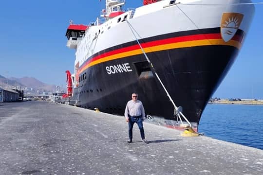 Entre los científicos a bordo del moderno buque de investigación R/V Sonne se encuentra el Dr. Sergio Contreras, académico de la Facultad de Ciencias de la Universidad Católica de la Santísima Concepción (UCSC), quien representa a Chile en esta misión científica de alto nivel. “La expedición busca explorar la interacción entre el continente y el océano en el clima del Desierto de Atacama y el Pacífico sudeste hace miles de años. Sabemos que este desierto no siempre fue hiperárido, y queremos entender cómo los procesos marinos y terrestres modulaban la variabilidad climática en esa zona”, explica el investigador.