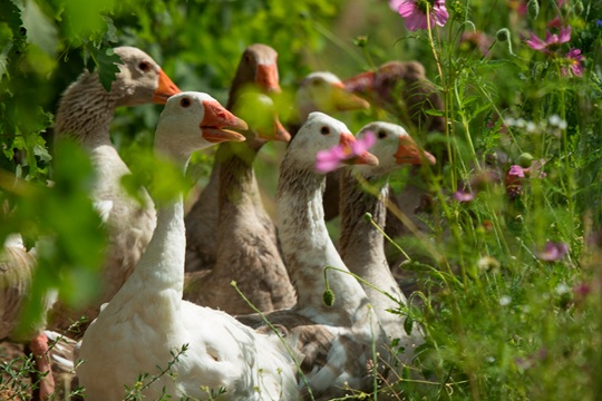 Estas aves se alimentan de bichos y malezas que perjudican las parras, a la vez que desechan materia orgánica rica en nutrientes esenciales para el crecimiento vegetal. En términos simples, los gansos limpian los caminos y abonan el suelo, contribuyendo a mantener las parras sanas.