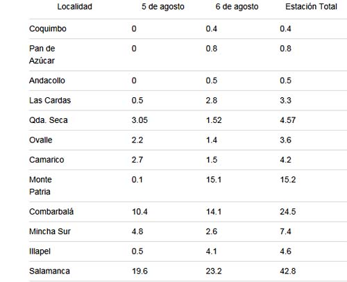 Hasta las 9:00 horas de esta mañana, las precipitaciones registradas por la red de estaciones del Centro de Estudios Avanzados en Zonas Áridas, Ceaza, son: